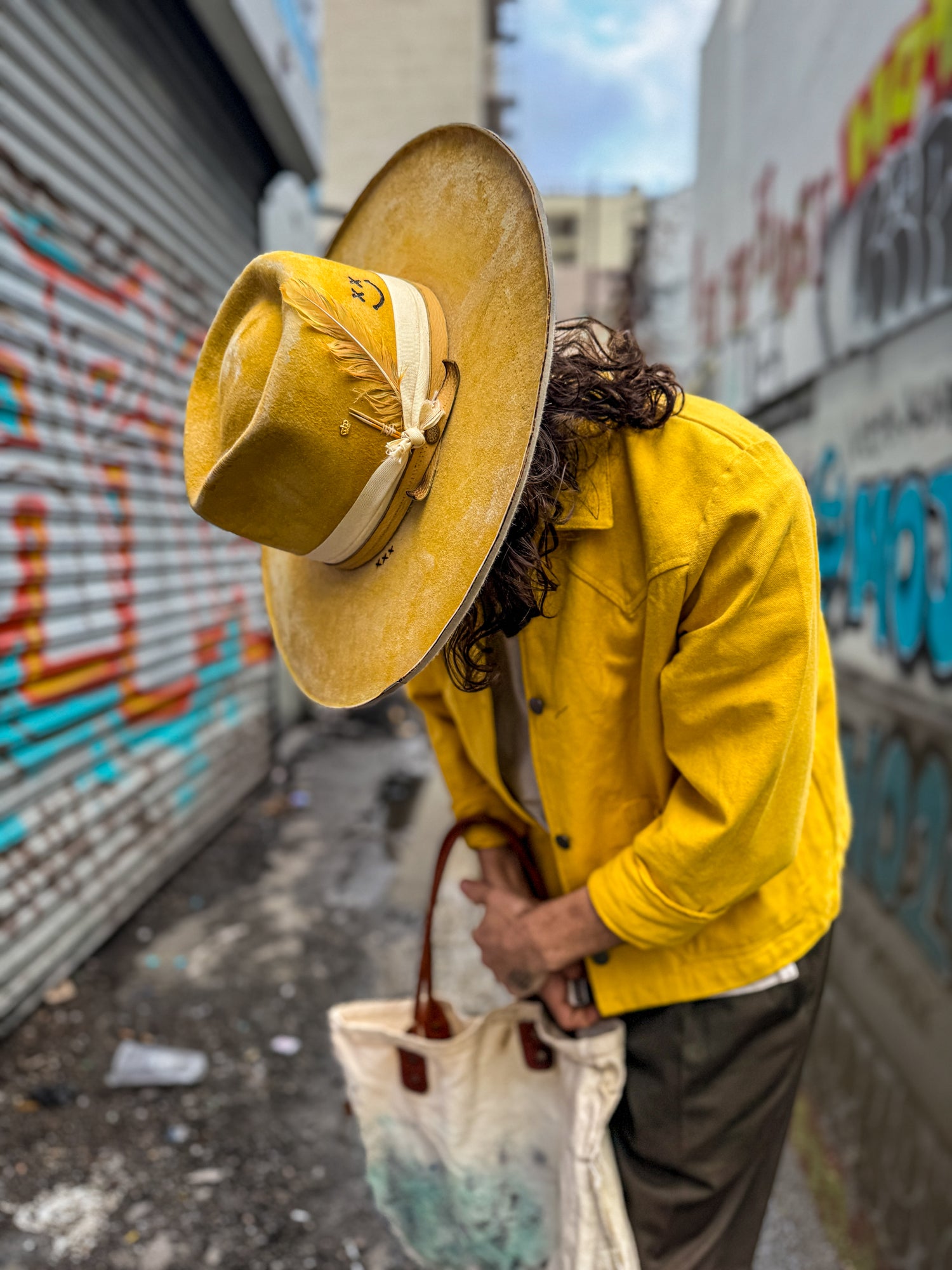 After years of styling celebrities, he realized that while fashion was exciting, it wasn’t fulfilling in the way he craved. Alongside his best friend Charlie, his dog and constant studio companion, he is drawn toward slow fashion and more intentional wearable art that reflects individuality rather than trends. Hat-making gives him that space.