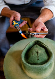 This hands-on workshop is focused entirely on texture, character, and controlled edge burning. You’ll start with a quality fur felt hat, and I’ll guide you through the exact techniques I use in my own Heller Hats studio.