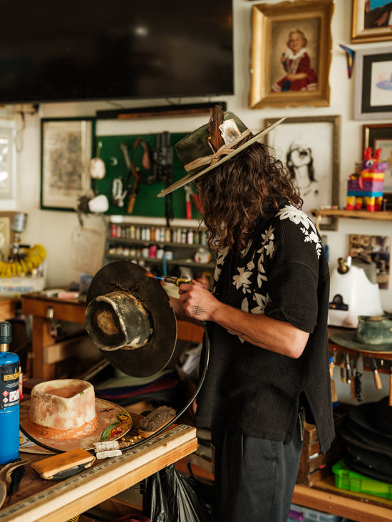 Step into the craft with immersive, hands-on workshops in Los Angeles. Shape, distress, and personalize your own handcrafted hat while learning the techniques behind the artistry.