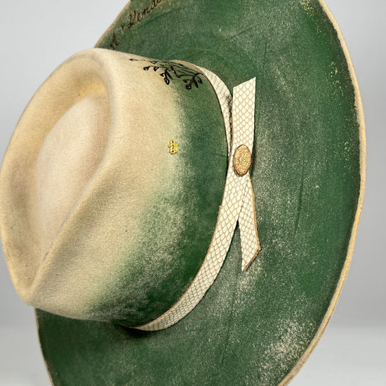 Transform an existing hat into something uniquely yours. Through reshaping, distressing, burning, and detailing, we refine your piece while preserving its character.